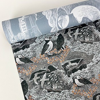 Double Sided Pattern Paper from Art Angels. 'Fair Isle Puffins' by Angela Harding.500 x 700mm(SG)