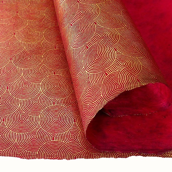 Meander - a gold & red geometric design. Hand screenprinted on to Nepalese lokta paper.500x750 approx (deckled edge)80gsm